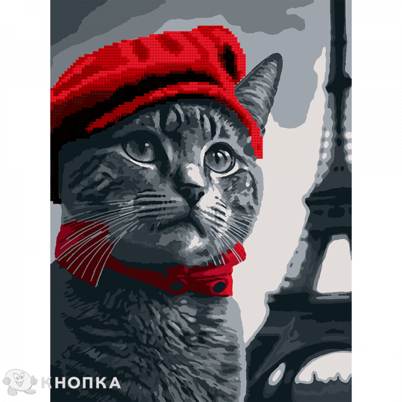Картина за номерами з алмазною мозаїкою Santi Котик у Парижі 30х40 см (954681)