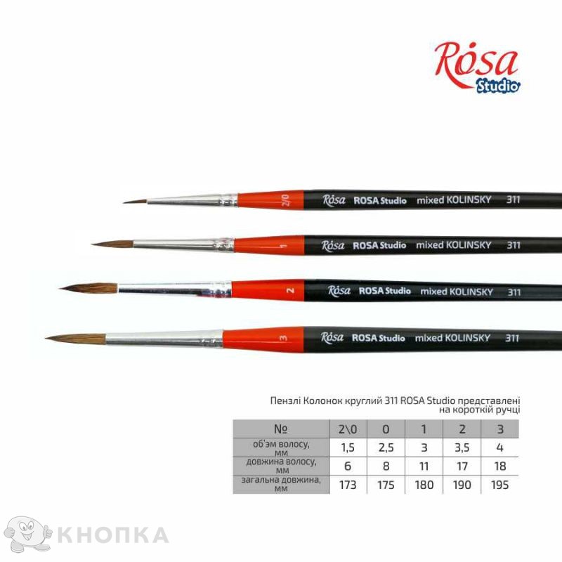 Пензель ROSA START 311 колонок круглий № 3 коротка ручка (18631103)