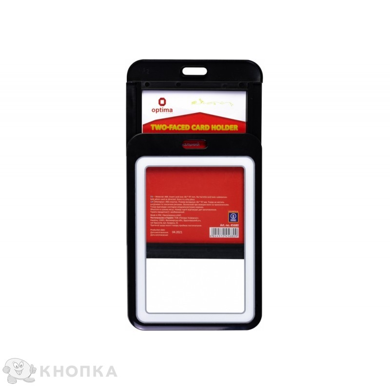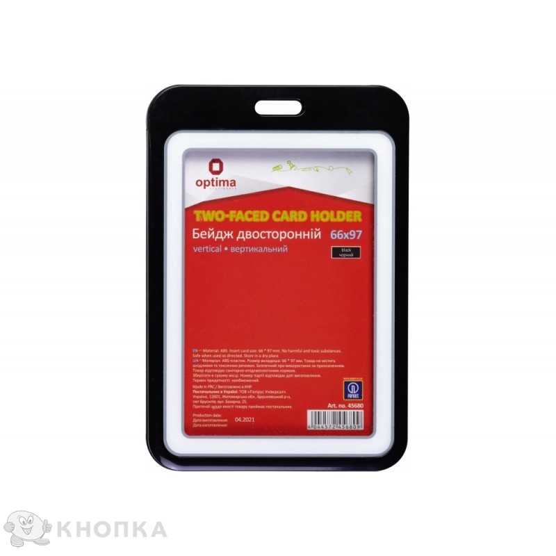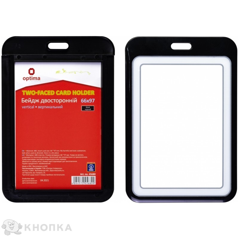 Бейдж вертикальний Optima двосторонній 66х97 мм чорний (O45680)