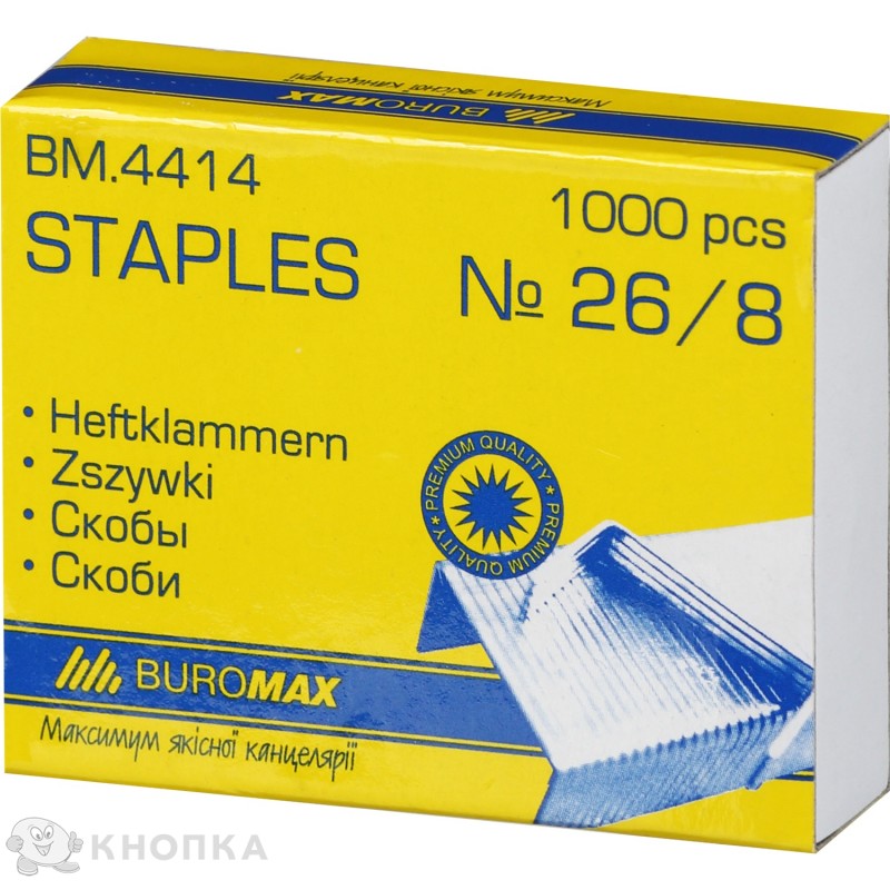 Скоби для степлера №26/8 Buromax нікельовані 1000 штук (BM.4414)