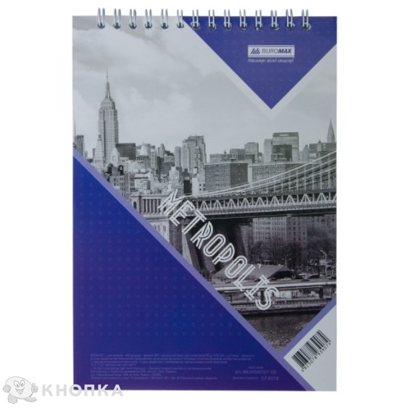 Блокнот Buromax Metropolis А4 48 аркушів клітинка синій (BM.24445101-02)