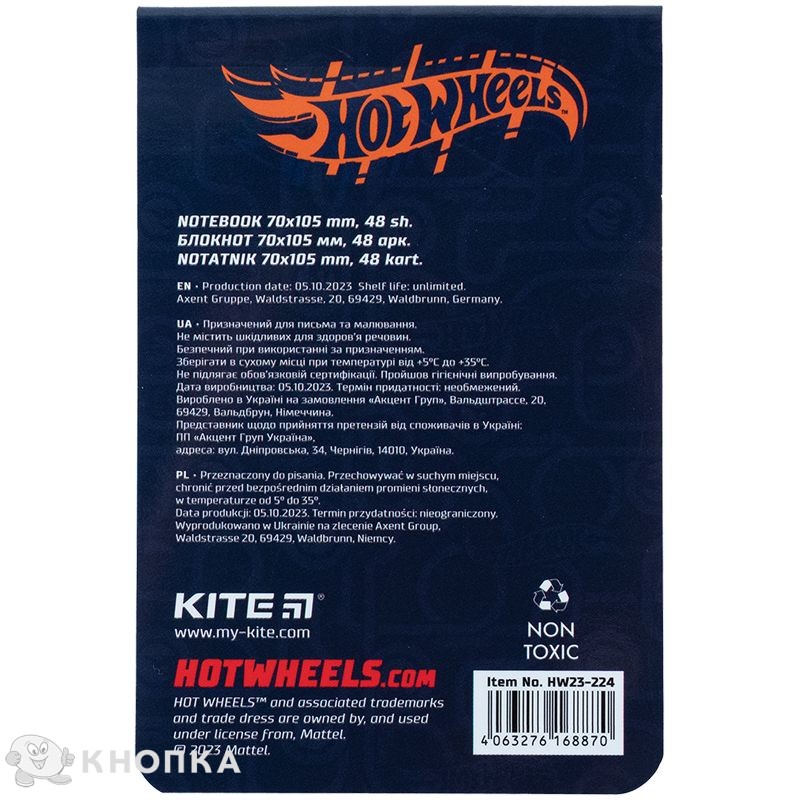 Блокнот Kite Hot Wheels 70х105 мм 48 аркушів клітинка (HW23-224)