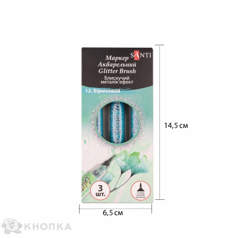 Маркери акварельні SANTI "Glitter Brush" ідеально підходять для виконання художніх робіт у різних технiках, включаючи скетчiнг та ілюстрування. Гнучкий наконечник у формі пензлика підходить для малювання штрихів змінної товщини та зафарбовування. Чорнило на водній основі. Упаковка: 3 шт. Корпус виготовлений з поліпропілену.