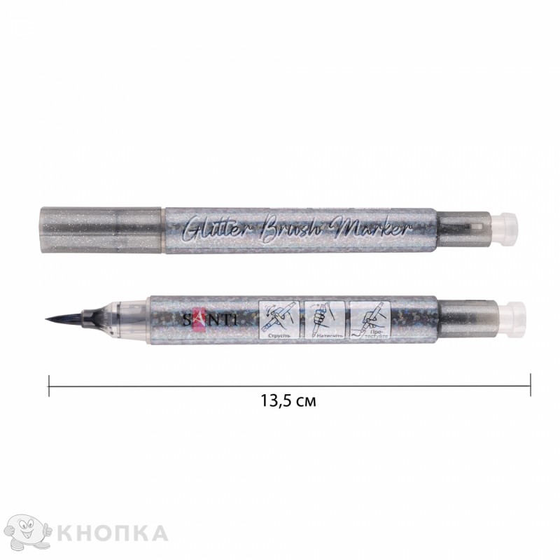 Маркер акварельний Santi Glitter Brush пензель срібний (390753)