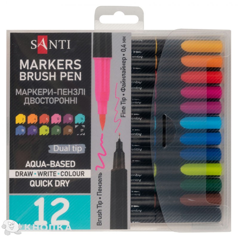Акварельні маркери «Brush Pen» від бренду SANTI - це безмежні можливості для ваших малюнків! Широка палітра кольорів вразить навіть досвідчених художн..