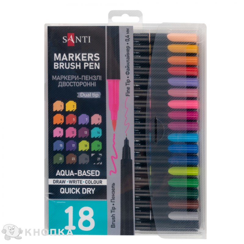 Набір акварельних маркерів Santi Brush Pen 18 кольорів двосторонні (390999)