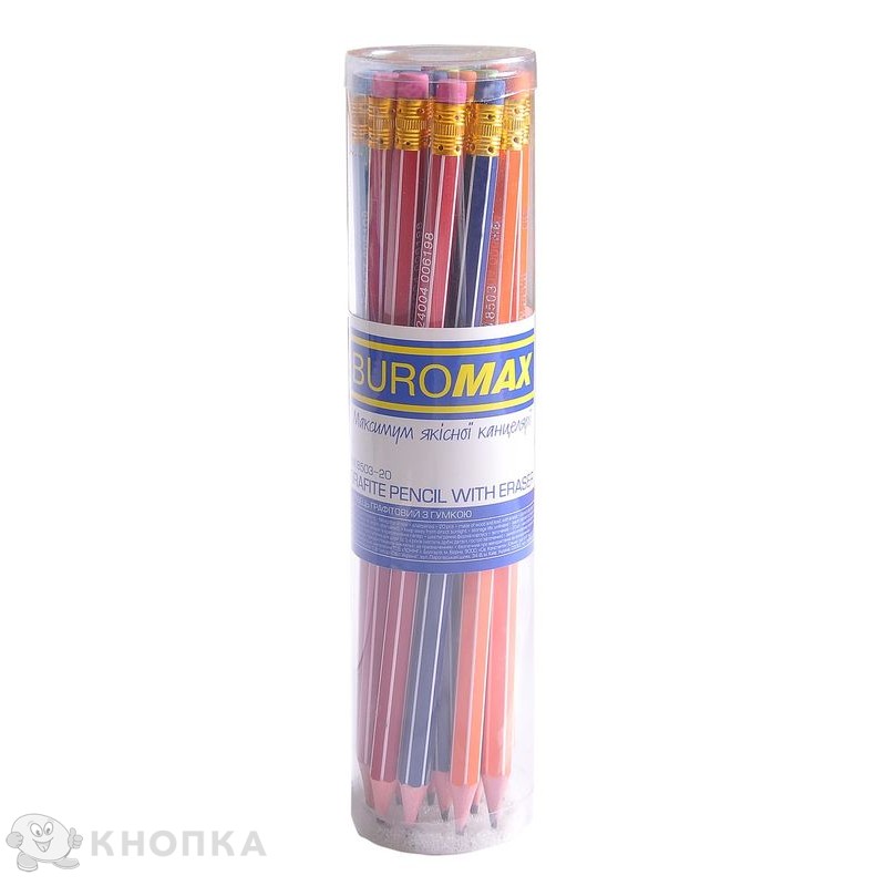 Олівець графітовий Buromax з гумкою 2 мм асорті (BM.8503-20)