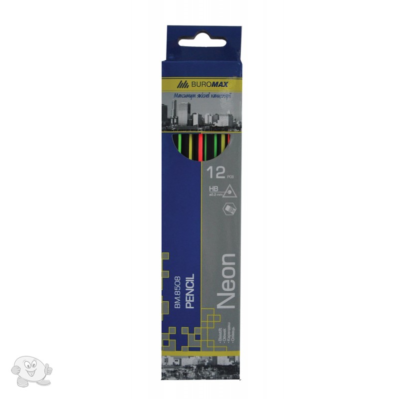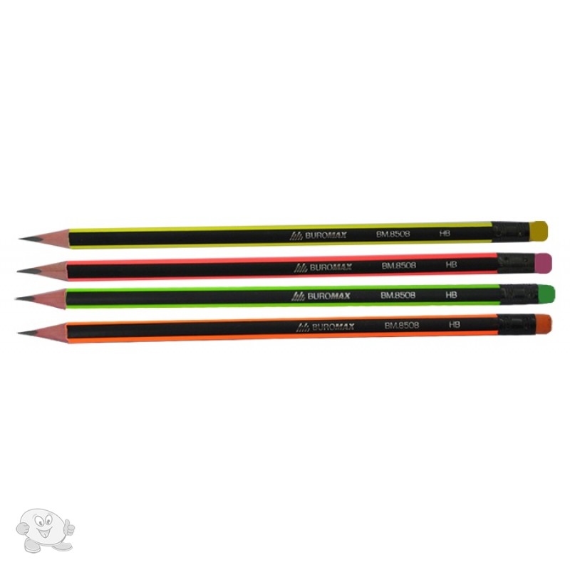 Олівець графітовий Buromax з гумкою 2 мм чорно-неоновий (BM.8508)