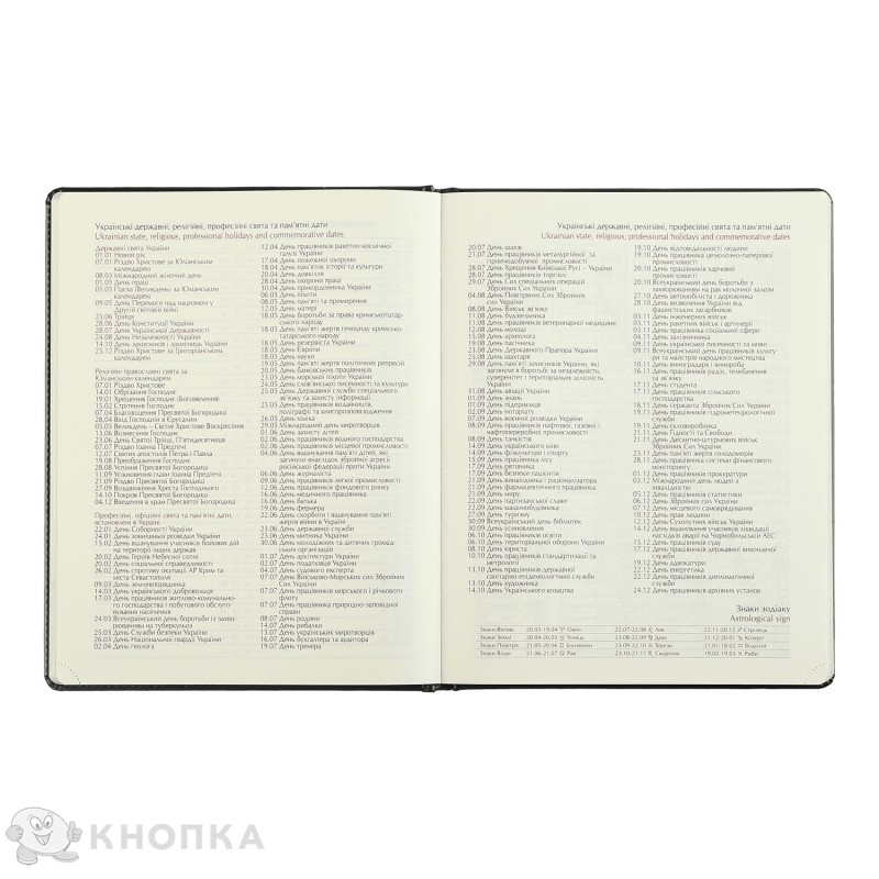| Матеріал обкладинки щоденників та щотижневиків | Штучна шкіра |