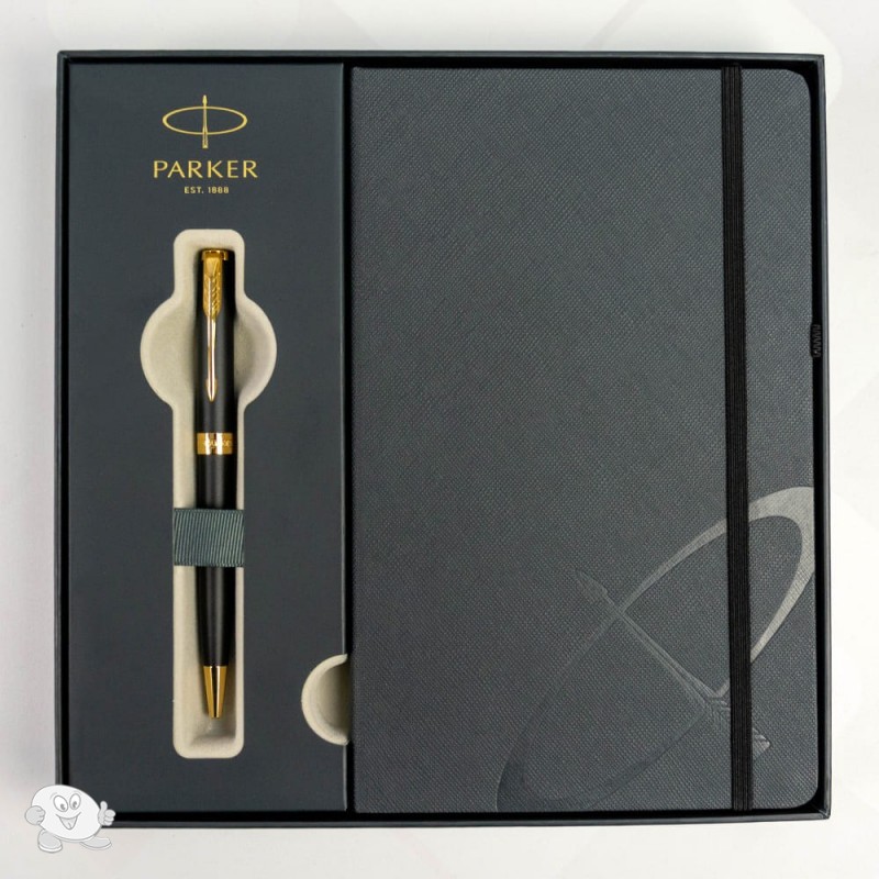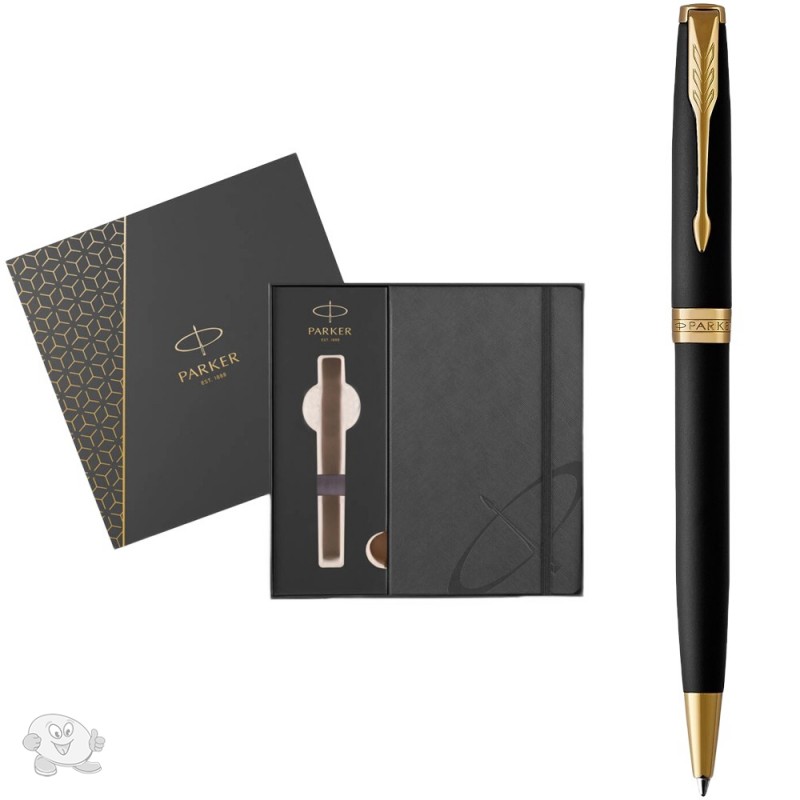 Набор Parker Sonnet Matte Black Lacquer GT BP шариковая ручка + блокнот (84 832b24)