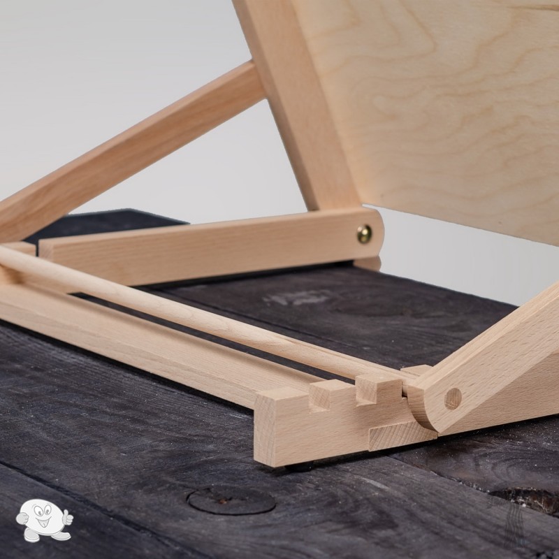 Классическая модель настольного мольберта со встроенным планшетом для работы в домашних условиях или проведение мастер-классов. Устойчивый, с горизонтальным расположением работы формата A3. Конструкция позволяет его компактно складывать. Мольберт изготовлен из экологически чистой буковой древесины. Благодаря уникальной текстуре дерево выглядит стильно и подходит к любым интерьерам. Планшет не промасливается. Плоский в сложенном виде и удобен в транспортировке. Конструкция предусматривает настольное использование и четыре фиксированных угла наклона со ступенчатой регулировкой. Может использоваться как в художественных, так и в выставочных целях. Тип мольберта: настольный, Н-образный, переносной. Высота мольберта: 360 мм. МАКС высота: 340 мм. Ширина полки: 460 мм. Размер планшета: 340х460 мм. Погрузка: до 5 кг. Габариты сложенного: 410х460х70 мм. Вес: 1,8 кг. Регулировка угла наклона: Ступенчатое. Верхний зажим: Нет. Переносной: Да. Дерево: Бук. Пропитка. льняным маслом: Нет.