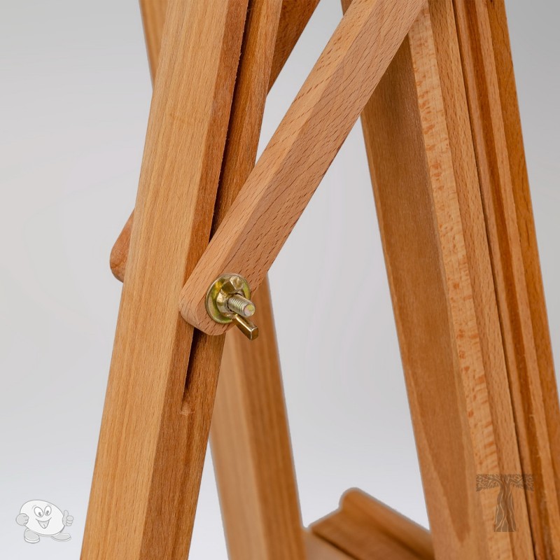 Мольберт изготовлен из экологически чистой карпатской буковой древесины. Благодаря уникальной текстуре дерева имеет стильный вид и подходит к любым интерьерам. Все деревянные детали конструкции пропитаны льняным маслом для длительной защиты.