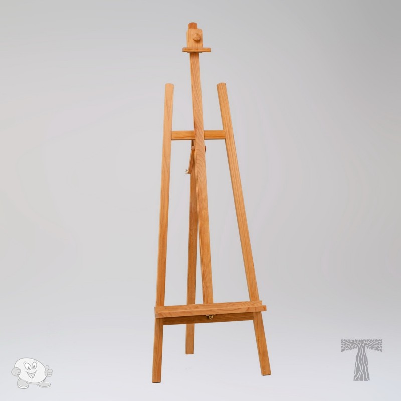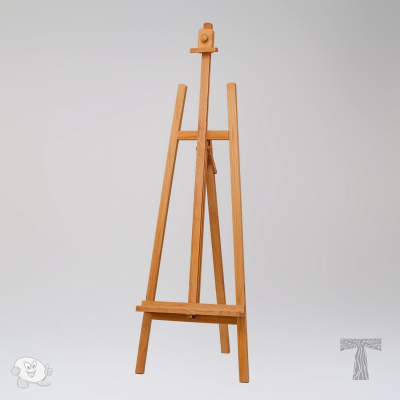 Особенность конструкции делает мольберт устойчивым и прочным. Три точки опоры позволяют устанавливать его на неровной поверхности. Оборудован подвижной штангой. Высота рабочей части регулируется реечным зубчатым механизмом. Угол наклона рабочей поверхности является переменным и фиксируется благодаря креплению оборудованном зажимом. Конструкция является простой и надежной в использовании.