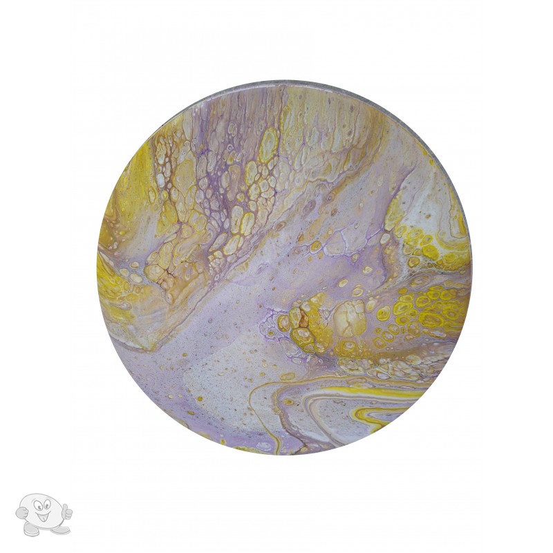 Набор для создания картины в технике fluid art (жидкий акрил). Сила самоцвета чароит – гармония. Это касается многих сфер – внутренний мир человека, налаживание общения с окружающими, семейные отношения. Помимо гармонизации себя и всего вокруг минерал окружит хозяина ореолом крепкой защиты от сплетен и зависти, а также от более серьезного негатива. Чароит развивает интуитивные ощущения, помогает подавить вспышки гнева, агрессии. Самоцвет сопровождает всех целенаправленных личностей, помогая справляться с поставленными задачами, несмотря на препятствия. В наборе: круглый борд из ламинированного МДФ, краски четырех цветов в бутылочках, блестки, открытка с QR-ссылкой на видеоурок, подвес для картины, палочки, стаканчики, перчатки, фартук, нарукавники, пеленка. Количество красок: 4. Цвета красок: фиолетовый, белый, желтый. Материал: ламинированный МДФ. Форма: круг. Диаметр: 30 см. Толщина: 1 см. Вес набора: 1 кг.