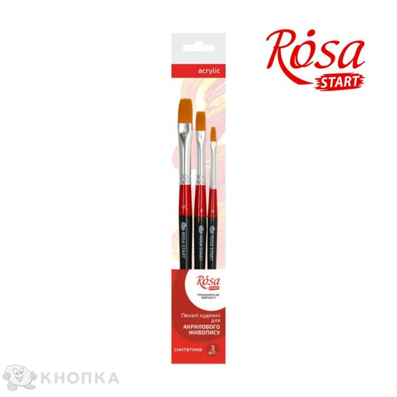 Набор кистей 3, синтетика плоская, 3шт (№4, 8,12), к.р., ROSA Studio
