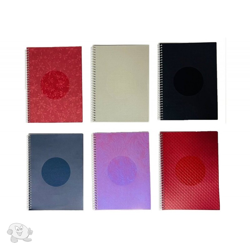 Блокнот формата A5 (150×200). Крепление блока – спираль. Обложка – пластик + дизайнерская бумага ассорти. Внутренний блок – клетка, плотность бумаги – 60 г/м2, количество листов – 40. Изготовлено в Украине.