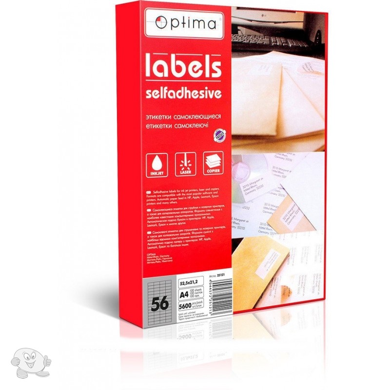 Этикетки Optima с клейким слоем 52.5x21.2 мм 56 штук белые (O25121)