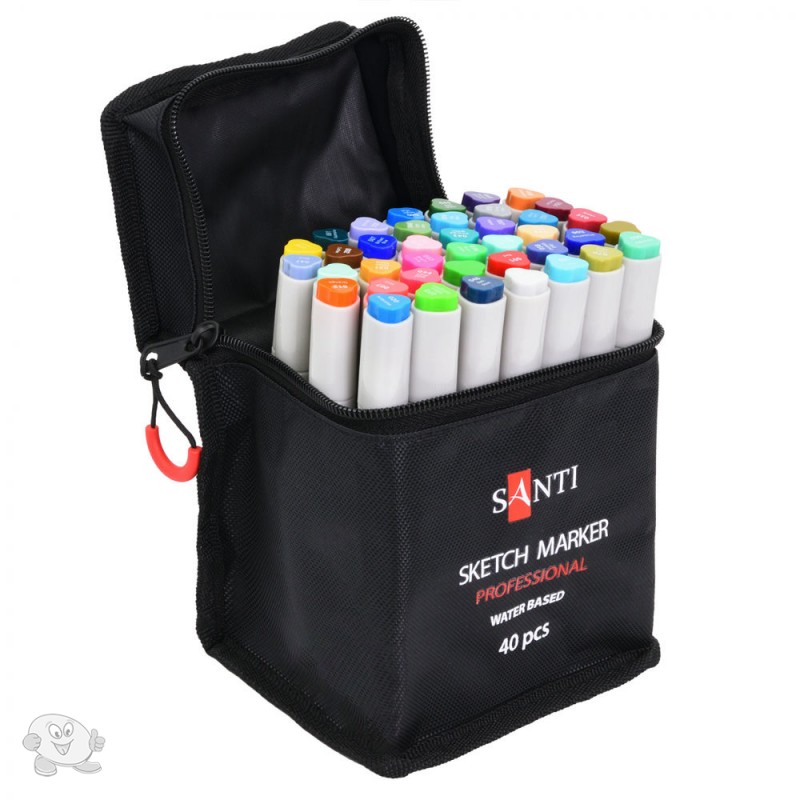 Скетч-маркеры SANTI – это безграничные возможности для ваших рисунков! Широкая цветовая палитра поразит даже опытных художников. В наборе 40 шт. Водорастворимые, светостойкие чернила предназначены для живописи и рисования в смешанных техниках. Сочетают в себе свойства маркеров и акварельных красок. Для достижения акварельного эффекта можно размыть детали рисунка с помощью смоченной водой кисти на бумаге или разбавить водой чернила на палитре. Оснащены двумя видами наконечников: мягкая кисть для точной детализации рисунка и долото – для заполнения больших фрагментов. Для работы можно использовать акварельную бумагу или специальную бумагу для рисования маркерами.