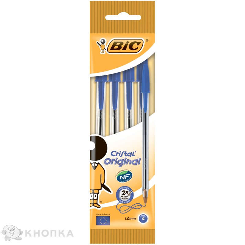 Шариковая ручка BIC. Чернила на масляной основе. Прозрачный шестигранный корпус. Средняя линия письма: 0,32 мм. Продолжительность письма: до 3 км (SGS тест 2012/2015 для синих и черных чернил). Диаметр шарика: 1 мм. Страна: Франция.