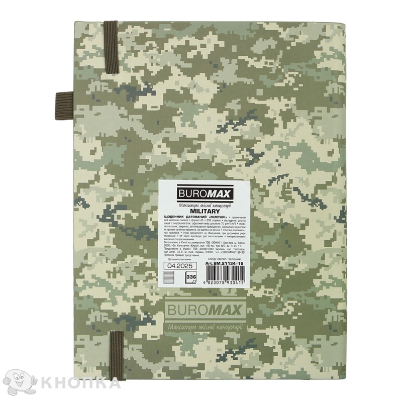 Дневник датированный 2026 Buromax Military А5 336 страниц светло-зеленый (BM.21134-15)