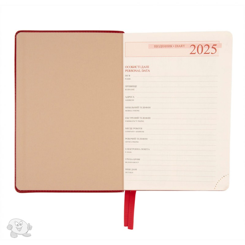 Дневник датированный 2025 Leo Planner Aldento A5 368 страниц красный (252537)