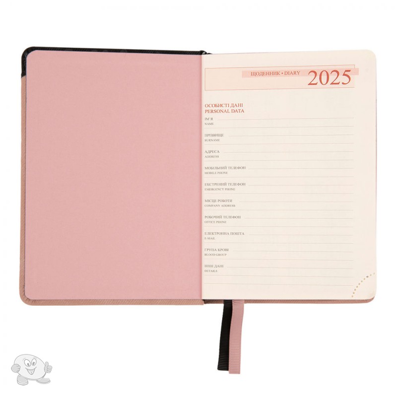 Дневник датированный 2025 Leo Planner Angolo A6 352 страницы черно-розовый (252594)