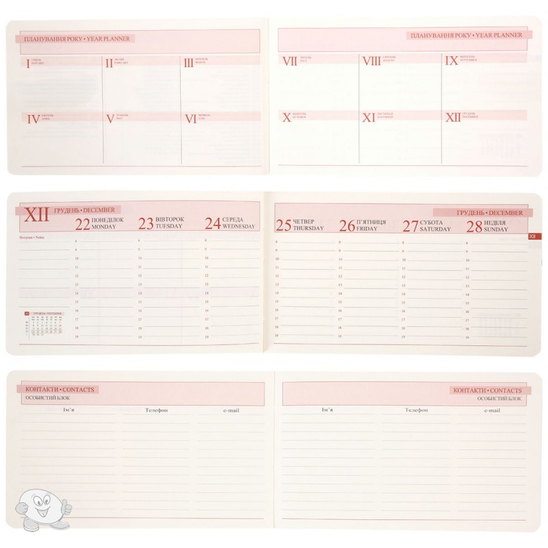 | Тип дневников и еженедельников | датированный |