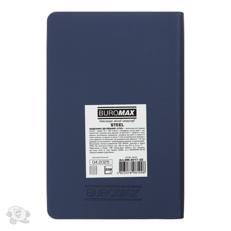 Дневник датированный 2026 Buromax STEEL A6 336 страниц синий (BM.2517-02)