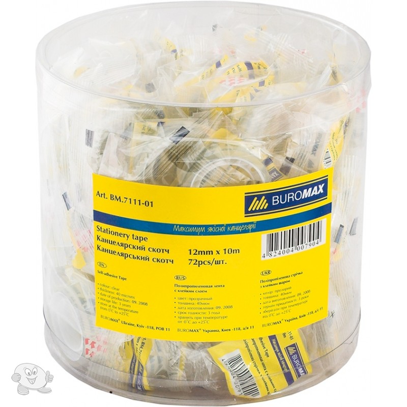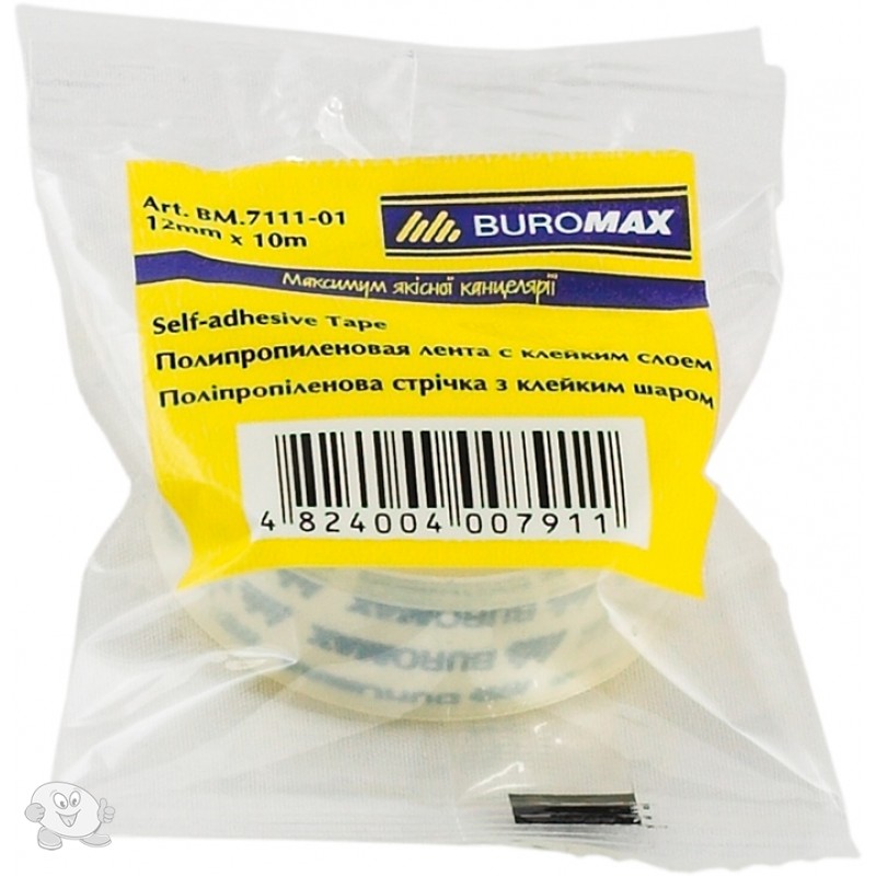 Клейкая лента Buromax канцелярская 12 мм х 10 м прозрачная (BM.7111-01)