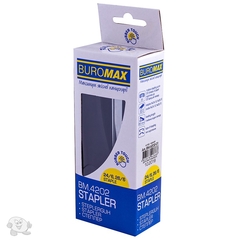 Степлер Buromax RUBBER TOUCH скобы №24; 26 до 20 листов пластиковый черный (BM.4202-01)