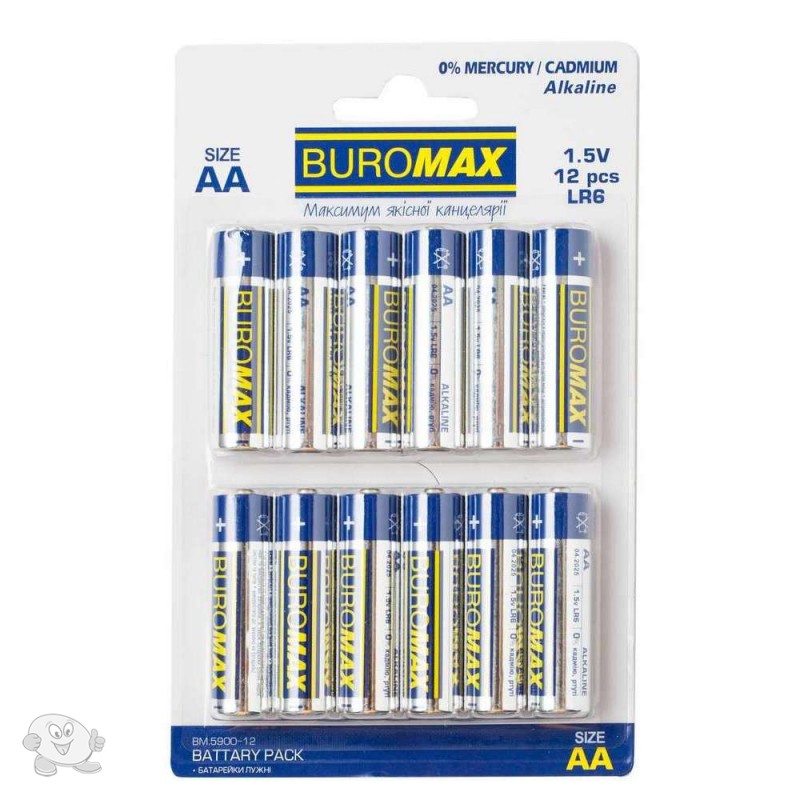 Набор элементов питания (батарейка) Buromax LR6 (AA) 12 штук упаковка (BM.5900-12)