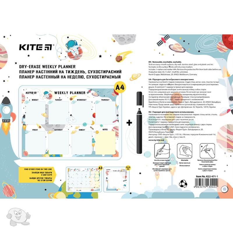 Планер настенный в неделю Kite Space А4 (K22-471-1)