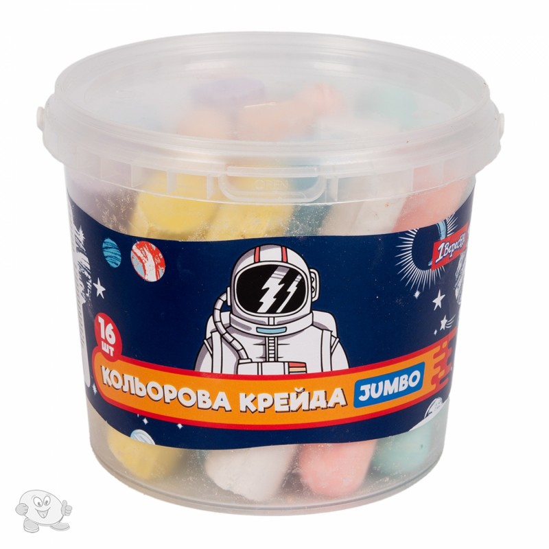 Мел 1 Сентября Jumbo Space в ведре 16 шт цветная (400478)
