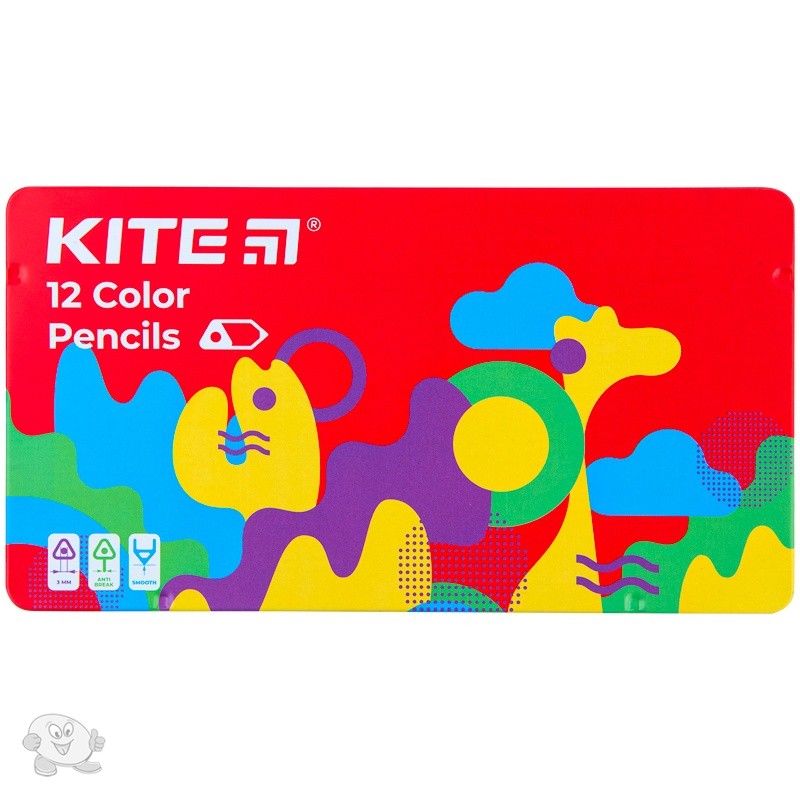 Карандаши цветные трехгранные Kite Fantasy металлический пенал 12 цветов (K22-058-2)