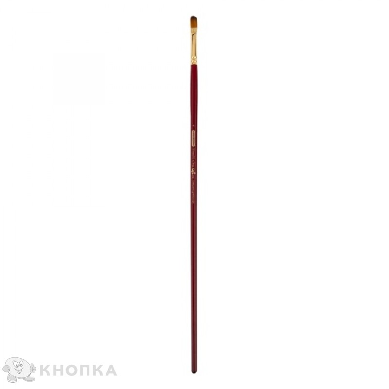Стандартная выставка рабочей части. Высококачественный синтетический волос коричнево-рыжего цвета отличается очень высокой мягкостью, эластичностью и упругостью. Материал ручки - натуральная древесина, окрашенная в стильный вишневый цвет и покрыта лаком. Обойма - бесшовная, из никелированной латуни. Овальный кисть - любимый кисть многих художников. Это - универсальный кисть, который сочетает в себе свойства круглого и плоского кисти. В обычном положении относительно поверхности этим кистью можно рисовать, как обычным плоским кистью. А в перпендикулярном положении мазки овального кисти практически идентичны мазкам кисти с круглой формой пучке. Овальный кисть подходит как для крупных мазков, так и для мелких деталей. С помощью этого кисти можно, не отрывая руки, переходить от толстых линий к тонким и создавать переходы одного цвета в другой. Также он контролирует нанесения мазка по краю контура неправильной формы. Рекомендуется для всех распространенных видов красок. Незаменим при работе с жидкими красками - гуашью и акварелью - когда от кисти требуется высокая упругость. При работе с акварелью дает матовый, смягченный слой цвета. Хорошо регулирует текучесть краски и интенсивность цвета слоя. Размер / формат №4.