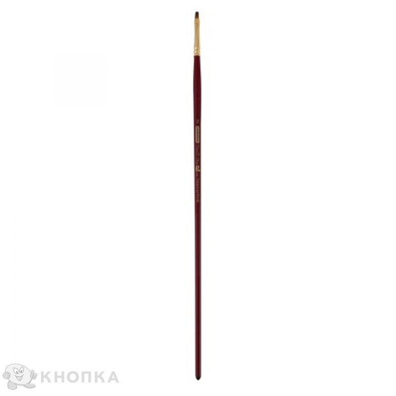 Стандартная выставка рабочей части. Высококачественный синтетический волос (имитация колонка) отличается очень высокой мягкостью, эластичностью и упругостью. Материал ручки - натуральная древесина, окрашенная в стильный вишневый цвет и покрыта лаком. Обойма - бесшовная, из никелированной латуни. Плоской кистью наносят широкие ровные мазки - он незаменимый помощник при работе с крупными участками полотна, когда требуется нанесение широких равных мазков постоянной толщины. В случае необходимости можно изменять толщину мазке, изменяя поворот кисти в процессе рисования. Плоская кисть очень удобен при изображении таких элементов природы, как земля, трава, листья, относительно точных очертаний. Рекомендуется для всех распространенных видов красок. Незаменим при работе с жидкими красками - гуашью и акварелью - когда от кисти требуется высокая упругость. При работе с акварелью дает матовый, смягченный слой цвета. Хорошо регулирует текучесть краски и интенсивность цвета слоя. Прекрасно ведет себя и с пастозными густыми красками - маслом и акрилом, как в густом, так и в разведенном виде. Размер / формат №2.