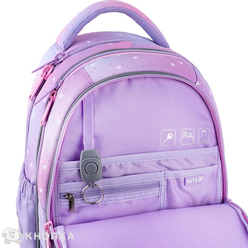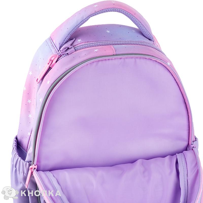Школьный полукаркасный рюкзак Kite K25-724S-2 – невероятно компактная и легкая модель, идеально подходит для детей, идущих в первый класс. Облегченный малогабаритный рюкзак – оптимальный вариант для детей худощавого телосложения и маленького роста. С этим рюкзаком будет максимально легко и удобно ходить в школу и на подготовительные занятия. Продуманная организация места с удобными карманами и отделениями поможет всегда поддерживать содержимое рюкзака в порядке. Стильный дизайн с эффектным декором побуждает учиться с радостью. Ортопедическая конструкция обеспечивает максимальный комфорт для ребенка и способствует поддержанию правильной осанки. Модель одобрена германским Институтом Здоровья и Эргономики IGR, адаптирована под возрастные физические особенности школьников. Рекомендована для детей 6-8 лет и ростом 115 – 130 см. Удивительный дизайн с фактурным декором будет ежедневно дарить радость и вдохновение. Приятный бонус от Kite. Вместе с рюкзаком вы получаете стильный кошелек с карабином, который можно носить как пристегнутым к рюкзаку, так и по отдельности, как самостоятельный аксессуар. Бренд Kite — признанный лидер в мире рюкзаков, ежегодно получающий самые престижные награды: Выбор года, Выбор страны, Украинская народная премия. Потребители и эксперты рынка выбирают Kite за безупречное качество, стиль, инновационные решения и эргономичный дизайн. Рюкзак снаружи: запатентованная ортопедическая спинка Ergo Kids с мягкими дышащими подушечками повторяет естественные изгибы спины; комфортные дышащие лямки S-образной формы снижают нагрузку на плечи; съемный нагрудный ремень фиксирует лямки и равномерно распределяет вес; большой фронтальный карман на молнии; 2 боковых кармана на резинке для бутылочки с водой или небольшого термоса; мягкая уплотненная ручка-переноска; текстильная ручка-петля; износостойкое EVA-дно с ножками, которые помогут избежать загрязнений; световозвращающие элементы с 4 сторон – чтобы ребенка было видно в темное время суток; надежная фурнитура – молнии работают плавно, пуллеры – с приятным на ощупь покрытием; съемный кошелек на карабине – стильный и функциональный; декор: аппликация из блестящей ткани, брелок-подвеска с бусинами. Рюкзак внутри: 2 отделения – вместительные и просторные; карман для планшета с мягким плюшем внутри – для бережного хранения гаджета; карман для телефона с плюшевой вставкой для защиты экрана; внутренняя система разделителей с фиксирующей резинкой – для тетрадей и книг; удобная съемная ключница; поле для персональных данных владельца; иконки внутренней навигации, подсказывающие назначение каждого кармана; крепкая брендированная подкладка.