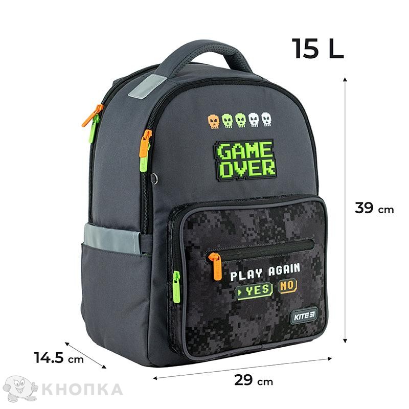 Школьный рюкзак Kite Education Game Over 39х29х14.5 см 15 л серый (K24-770M-4)