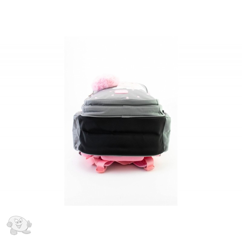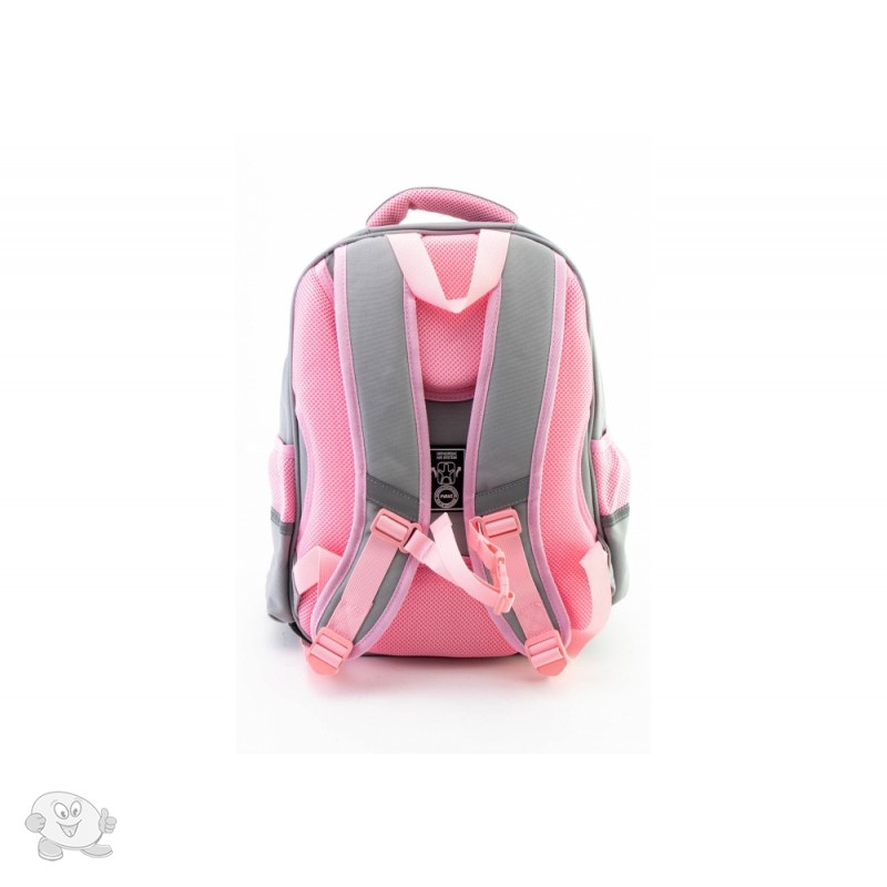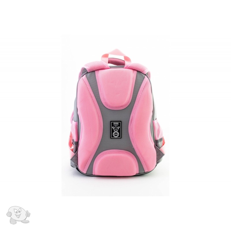 Размер 38,5*27*18 см. Основной материал: водоотталкивающий полиэстер. Конструкция рюкзака одобрена Ассоциацией ортопедов Украины, что делает его безопасным для позвоночника. Рюкзак содержит: 3 основных отделения; 2 боковых кармана для бутылочки и зонтика; жесткая ортопедическая спинка; эргономические S-образные лямки; разделитель для книг с резинкой; ключница; нагрудный ремень для дополнительной фиксации; надежная фурнитура; светоотражающие элементы; крепкая ручка и ручка-петля; прорезиненное дно, кольцо для брелока.