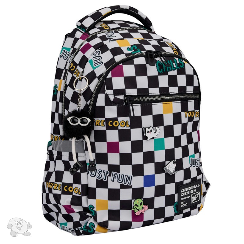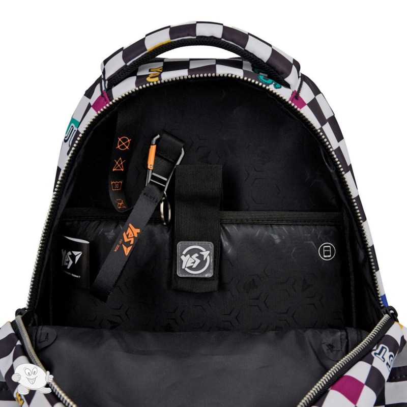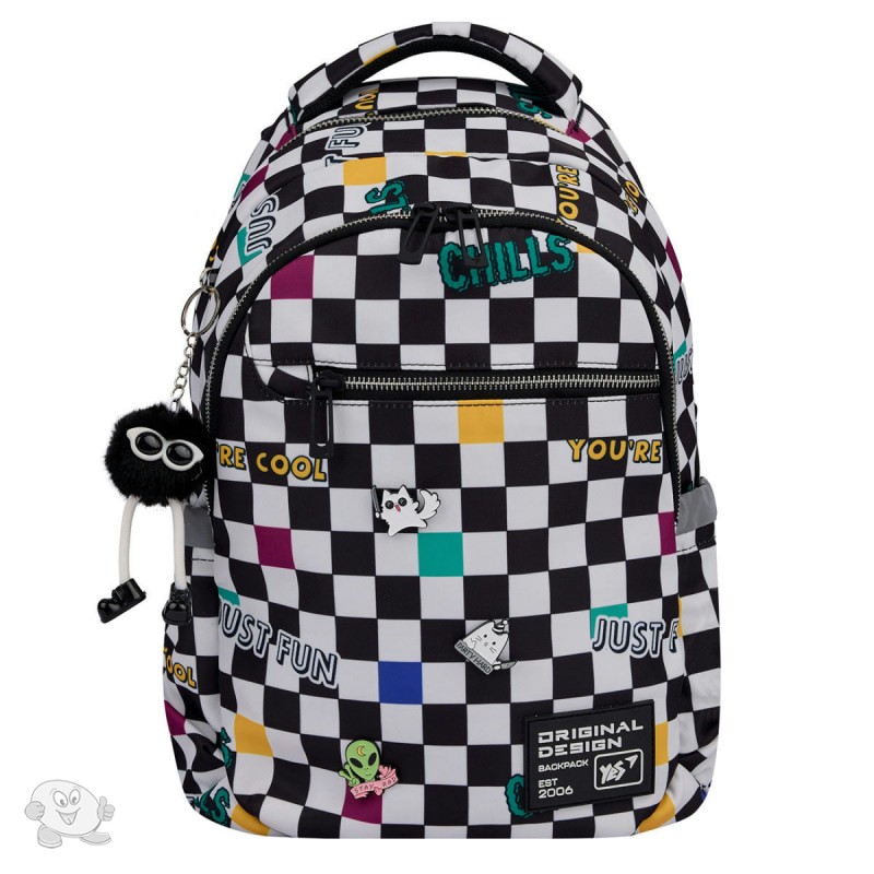 Школьный ортопедический рюкзак Yes TS-54 Just Fun – отличный выбор для учащихся средней и старшей школы. Ищете идеальный рюкзак для ребенка? Школьный ортопедический рюкзак TS-54 от бренда Yes создан с мыслью о потребностях тинейджеров. С одной стороны – это желание иметь модные и современные вещи, с другой – необходимо поддерживать правильную осанку. Рюкзак TS-54 от бренда Yes имеет ортопедическую спинку. Рельефные подушечки на спинке бережно поддерживают мышцы спины и оказывают легкий массажный эффект. При длительном ношении рюкзака бренд Yes рекомендует фиксировать рюкзак с помощью нагрудного ремня, таким образом, ортопедические свойства спинки проявляются наилучшим образом. Конструкция спинки и ее ортопедические свойства были оценены Институтом Травматологии и Ортопедии НАМН Украины и одобрены патентом. Благодаря S-образной форме плечевых ремней школьного рюкзака TS-54 от бренда Yes обеспечивается комфортное расположение лямок на плечах ребенка. Лямки не давят и не создают дискомфорт в шейной зоне. Рюкзак TS-54 от бренда Yes имеет два основных отделения и просторный карман на передней панели. Тетради, учебники, школьные папки, пенал удобно разместятся внутри. Для телефона и планшета предусмотрены внутренние карманы с флисовой подкладкой. Для документов или других мелких вещей – внутренние карманы на молнии. Световозвращающие элементы на рюкзаке TS-54 от бренда Yes гарантируют видимость ребенка в темное время суток, что очень важно для безопасности на дорогах. Модный принт «клеточка», брелок-помпон в виде забавного человечка непременно привлечет внимание подростков с нестандартным подходом к вещам. Особенности конструкции рюкзака Yes TS-54: ортопедическая спинка с смягчающими подушечками для правильного положения тела и комфорта во время ношения; анатомические S-образной формы уплотненные лямки для понижения нагрузки на плечи; нагрудный ремень с регулировкой по высоте для плотного прилегания рюкзака к спине подростка; усиленное дно для дополнительной стойкости; удобная текстильная ручка для переноски; 2 вместительных отделения для учебников и тетрадей; 1 передний карман для школьных принадлежностей; 2 боковых кармана для бутылочки с водой и других мелких вещей; световозвращающие элементы для безопасности; надежная фурнитура для долговечности. Удобные детали внутренней организации рюкзака Yes TS-54: внутренний органайзер для школьных принадлежностей; карман для телефона; отдел для гаджетов с защитной флисовой подкладкой; отметки на карманах для внутренней навигации; брендированная крепкая подкладка. Размер и характеристики рюкзака Yes TS-54: Размер по сетке: M. Размер: 41 х 29 х 14 см. Материал: Полиэстер. Объем: 16,6л. Вес: 0,56 кг (+/- 10%). Рекомендовано для детей ростом от 130 см до 145 см.