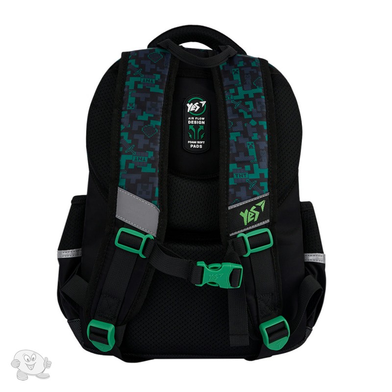 Мягкий школьный рюкзак Yes S-108 Minecraft Watch Out: функциональный рюкзак для школьников младшей школы! Школьный рюкзак S-108 от бренда Yes представляет собой универсальную модель для школьников младшей школы 3-4 классов. Школьный рюкзак S-108 имеет ортопедическую спинку, которая способствует более равномерному распределению нагрузки на позвоночник, что защищает его от чрезмерной нагрузки и противодействует развитию сколиоза. Рельефные подушечки на спинке ортопедического рюкзака S-108 поддерживают мышцы спины и оказывают легкий массажный эффект. Ребенок будет чувствовать комфорт в течение всего времени ношения рюкзака. Ортопедические свойства спинки закреплены патентом и одобрены Институтом травматологии и ортопедии НАМН Украины. Школьный рюкзак S-108 от бренда Yes очень удобен, функционален и привлекателен. Рюкзак имеет 2 отделения и 5 карманов, что делает его очень вместительным. В школьном ортопедическом рюкзаке S-108 разместятся все необходимые школьные принадлежности, тетради, учебники, а также дополнительные материалы для внеклассных занятий. Распределить все равномерно внутри поможет удобный органайзер, разделители и карман с флисовой подкладкой для планшета. Школьный ортопедический рюкзак S-108 от бренда Yes имеет уплотненное дно, что придает рюкзаку дополнительную прочность и долговечность. Водоотталкивающие свойства ткани предохранят рюкзак от нежелательного воздействия осадков. Прорезиненные пулеры с металлическим основанием обеспечат длительное использование рюкзака. Благодаря сочетанию различных фактур и цвета материалов, рюкзак Yes S-108 Minecraft Watch Out выглядит модно и современно. Выразительный пиксельный паттерн придает оригинальность и динамичность, делая рюкзак особым аксессуаром для активного мальчика, поклонника популярной игры. Майнкрафт. К рюкзаку прилагается стильный брелок-подвеска, создающая завершенный образ и может стать ярким акцентом или использоваться отдельно как интересный аксессуар. Особенности конструкции школьного рюкзака Yes S-108: ортопедическая спинка со смягчающими подушечками для правильного положения тела и комфорта во время ношения. Конструкция спинки запатентована; нагрудный ремень с регулировкой по высоте для плотного прилегания рюкзака к спине ребенка; уплотненное дно для дополнительной стойкости; удобная основная ручка и петля для подвешивания его на крючок; 2 вместительных отделения для учебников и тетрадей; 3 вместительных передних кармана для школьных принадлежностей; 2 боковых кармана для бутылочки с водой и других мелких вещей; надежная фурнитура для долговечности; прорезиненные пулеры с металлическим основанием для долговечности; световозвращающие элементы для безопасности; система Quick Set-UP для легкой регулировки плечевых лямок. Удобные детали внутренней организации школьного рюкзака Yes S-108: внутренний органайзер для школьных принадлежностей; карман для телефона; отдел для гаджетов с защитной флисовой подкладкой; карточка-вкладыш для внесения персональных данных учащегося; отметки на карманах для внутренней навигации; ключница-пружинка; брендированная крепкая подкладка. Размер и характеристики рюкзака Yes S-108: Размер за сетку