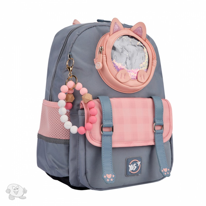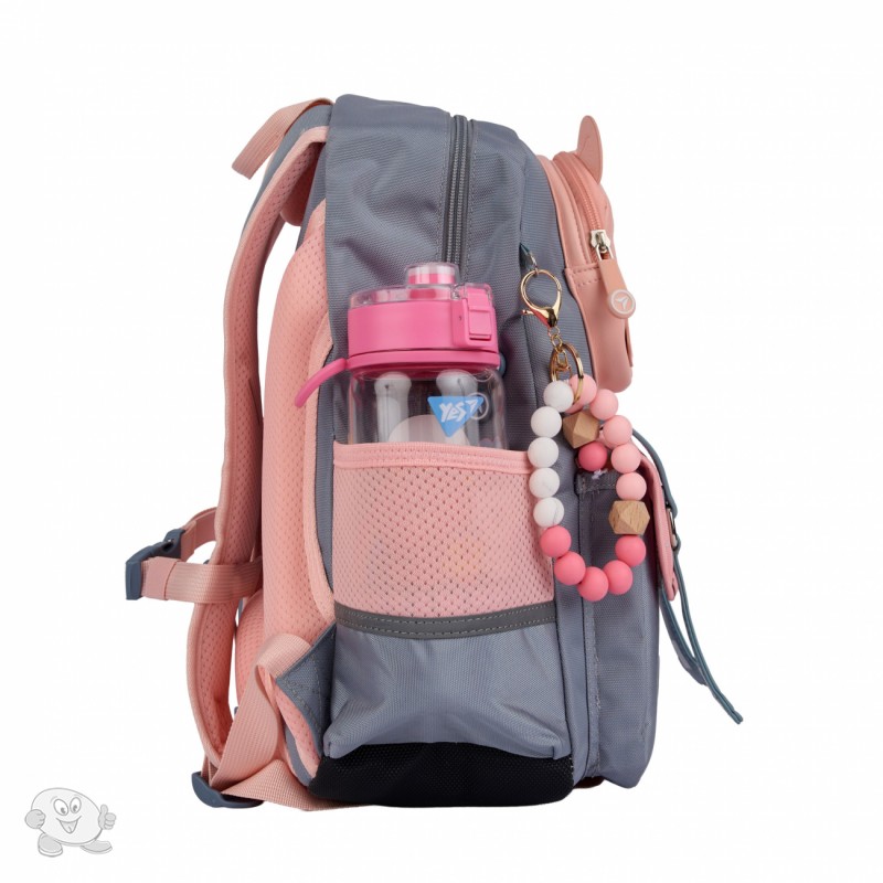 Мягкий школьный рюкзак Yes S-104 Glamour Kitty: миниатюрный и легкий рюкзак для младших школьников! Такое событие, как «Первый раз в первый класс», очень ответственно для мамы, которая готовит своего ребенка к поступлению в школу. Бренд Yes понимает все потребности школьников и берет на себя ответственность за комфорт ребенка в его одном из важнейших этапов жизни. Именно с мыслью о маленьких и хрупких первоклашках был разработан рюкзак S-104. Его преимущества обязательно отметят и мамочки, и дети. Школьный ортопедический рюкзак S-104 – это миниатюрная и мягкая модель без утяжеления конструктива чрезмерным функционалом. Вес рюкзака – не превышает 750 грамм. Школьный рюкзак S-104 имеет одно просторное отделение, ортопедическую спинку, конструктив которой утвержден патентом. Анатомические S-образной формы плечевые ремни регулируются по длине, поэтому обеспечат комфортное расположение рюкзака на малышах. Нагрудный ремень поможет надежно зафиксировать рюкзак на ребенке. Удобные прорезиненные пулеры с металлическим основанием будут служить долго в активной жизни владельца рюкзака. Внутренний органайзер школьного рюкзака S-104 разработан специально для нужд детей в младшей школе. Карман на молнии для важных мелочей, прозрачный карман для школьного бейджа, ключница-пружинка для надежного хранения ключей, а также карманы для гаджетов с флисовой мягкой подкладкой помогут ребенку разместить все необходимые вещи. Конструкция и размер боковых карманов – идеальны для размещения бутылочки с водичкой. Объемный передний карман с клапаном подходит для размещения пенала с канцелярскими принадлежностями от бренда Yes. Рюкзак Yes S-104 Glamour Kitty влюбит в себя с первого взгляда благодаря своему необычному дизайну. Классическое сочетание серого и розового цвета, дополненное глитерными элементами, создает эффектный и стильный вид, который не оставит равнодушным юную школьницу. Неординарное дизайнерское исполнение дополнительного кармашка придает рюкзаку еще больше шарма, превращая его в настоящее произведение искусства. Тематический брелок в подарок! Особенности конструкции школьного рюкзака Yes S-104: ортопедическая спинка с смягчающими подушечками для правильного положения тела и комфорта во время ношения. Конструкция спинки запатентована; нагрудный ремень с регулировкой по высоте для плотного прилегания рюкзака к спине ребенка; уплотненное дно для дополнительной стойкости; удобная ручка-петля для переноски рюкзака и подвешивание его на крючок; 1 вместительное отделение для учебников и тетрадей; 2 вместительных передних кармана для школьных принадлежностей; 2 боковых кармана для бутылочки с водой и других мелких вещей; надежная фурнитура для долговечности; световозвращающие элементы для безопасности; система Quick Set-UP для легкой регулировки плечевых лямок. Удобные детали внутренней организации школьного рюкзака Yes S-104: внутренний органайзер для школьных принадлежностей; карман для телефона; отдел для гаджетов с защитной флисовой подкладкой; карточка-вкладыш для внесения персональных данных учащегося; отметки на карманах для внутренней навиг