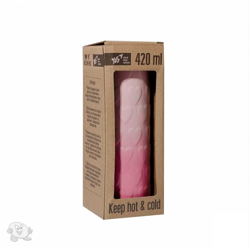 Термокружка YES Pink Heart 420 мл розовая (707336)