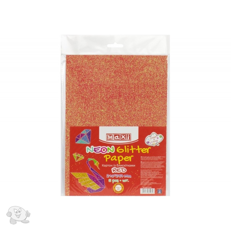 Картон Maxi с блестками A4 5 штук яркий красный (MX61930)