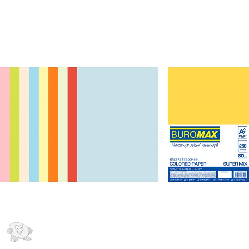 Набор цветной бумаги Buromax Super Mix А4 10 цветов 250 листов (BM.27216250-99)