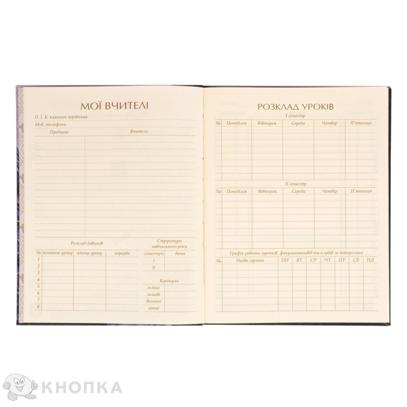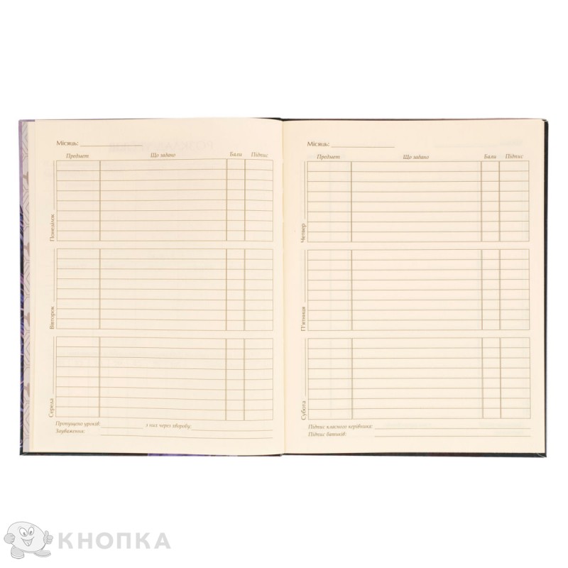 Дневник "Gorgeous girl" торговой марки YES предназначен для заполнения домашних задач учеником, выставления оценок учителями и родительского контроля за успеваемостью. данные учащегося, учителей и школы, расписание уроков и звонков, табель успеваемости. Справочная информация о государственной символике Украины и Президента Украины.