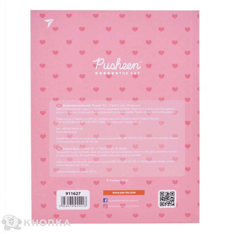 Дневник "Pusheen" торговой марки YES предназначен для заполнения домашних заданий учеником, выставления оценок учителями и родительского контроля за у..