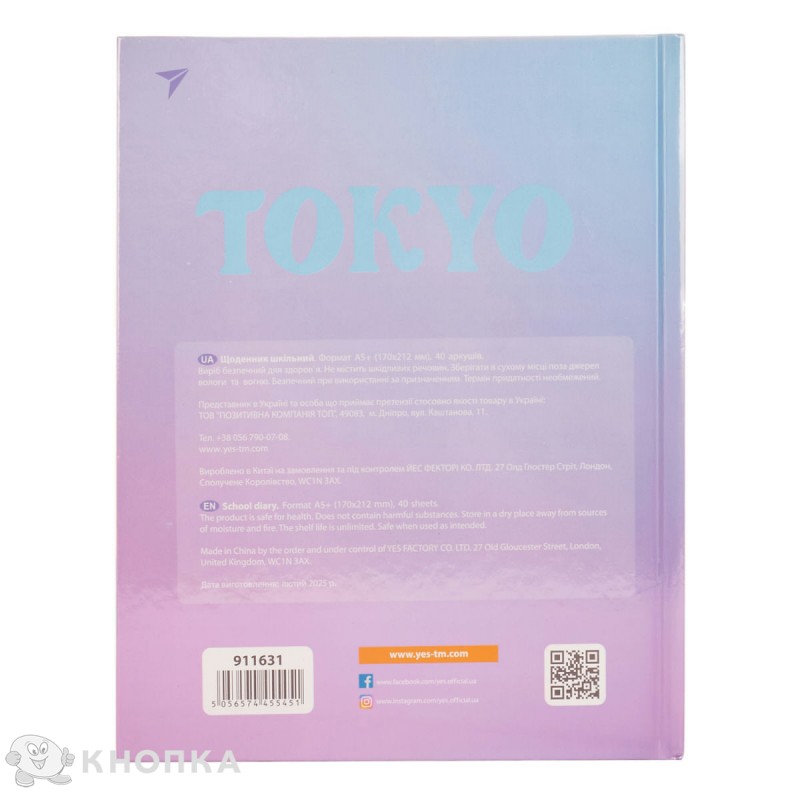 Дневник "Tokyo" торговой марки YES предназначен для заполнения домашних заданий учеником, выставления оценок учителями и родительского контроля за успеваемостью. Преимущество ежедневника YES: Яркий и красивый дизайн обложки Иридиум. Твердый переплет. Кремовая бумага блоку придает элегантность и не утомляет зрение. Информационный блок – данные ученика, учителей и школы, расписание уроков и звонков, табель успеваемости. Справочная информация о государственной символике Украины и Президенте Украины. Дневник "Tokyo" – оптимальный выбор каждого ученика. Только самая важная и нужная информация, оптимальное количество писем, качество и удобство пользования. Дневник торговой марки YES станет надежным помощником для школьника на весь учебный год.