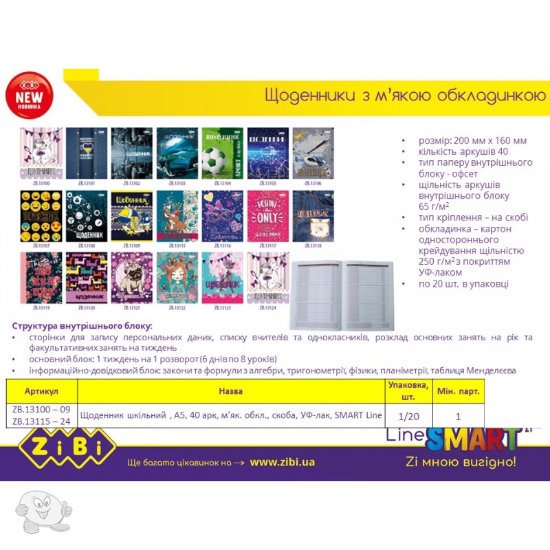 Дневник школьный ZiBi Positive А5 40 листов мягкая обложка скоба (ZB.13117)