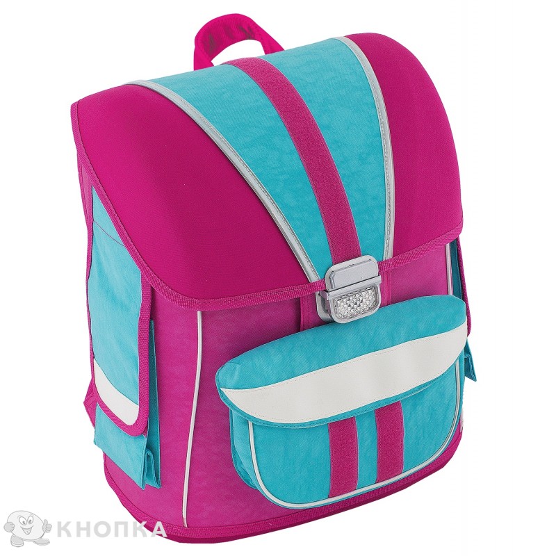 Розмір: 32*26*17 см; вага, г: 1100; матеріал: поліестер 300-600 D/РЕ вставки; спинка: ортопедична з РЕ-вставкою; лямки: ергономічні S-образні регульовані, з ременями для регулювання щільності їх прилягання; дно: EVA - з ніжками; наліпки на липучці - 3 шт. в комплекті, 2 відділення для книг та кишеня для дрібниць, 2 бокові кишені на липучці.
